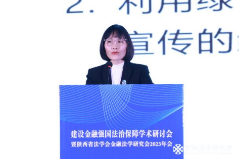 讲师樊新红博士代为宣读。他聚焦绿色金融市场的“漂绿行为”,指出中国绿色债券市场存在四个问题:一是规制体系以“软法”为主、二是法律法规缺乏体系性、三是信息披露制度存在缺陷、四是第三方评估认证体系不完善,并根据上述的四个问题提出了相应的完善建议:一是建立“硬法”,完善“软法”的总体思路;二是涉及特殊的责任机制对“漂绿”行为实施制裁;三是优化信息披露;四是完善第三方评估认证体系。