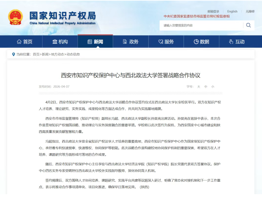 4月2日,西安市知识产权保护中心与永利娱乐场官网 战略合作协议签约仪式在永利娱乐场官网 长安校区举行。双方在知识产权人才培养、理论研究、实务实践、成果转化等方面达成合作,并共同为实践基地揭牌。