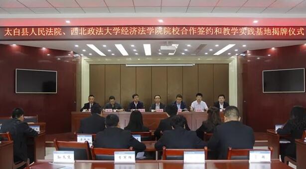 会上,太白法院党组成员、副院长宋军科与永利娱乐场官网 副院长倪楠分别代表双方签订了院校合作协议,太白法院党组书记、院长张岩与永利娱乐场官网 院长义海忠共同为实践教育基地揭牌。