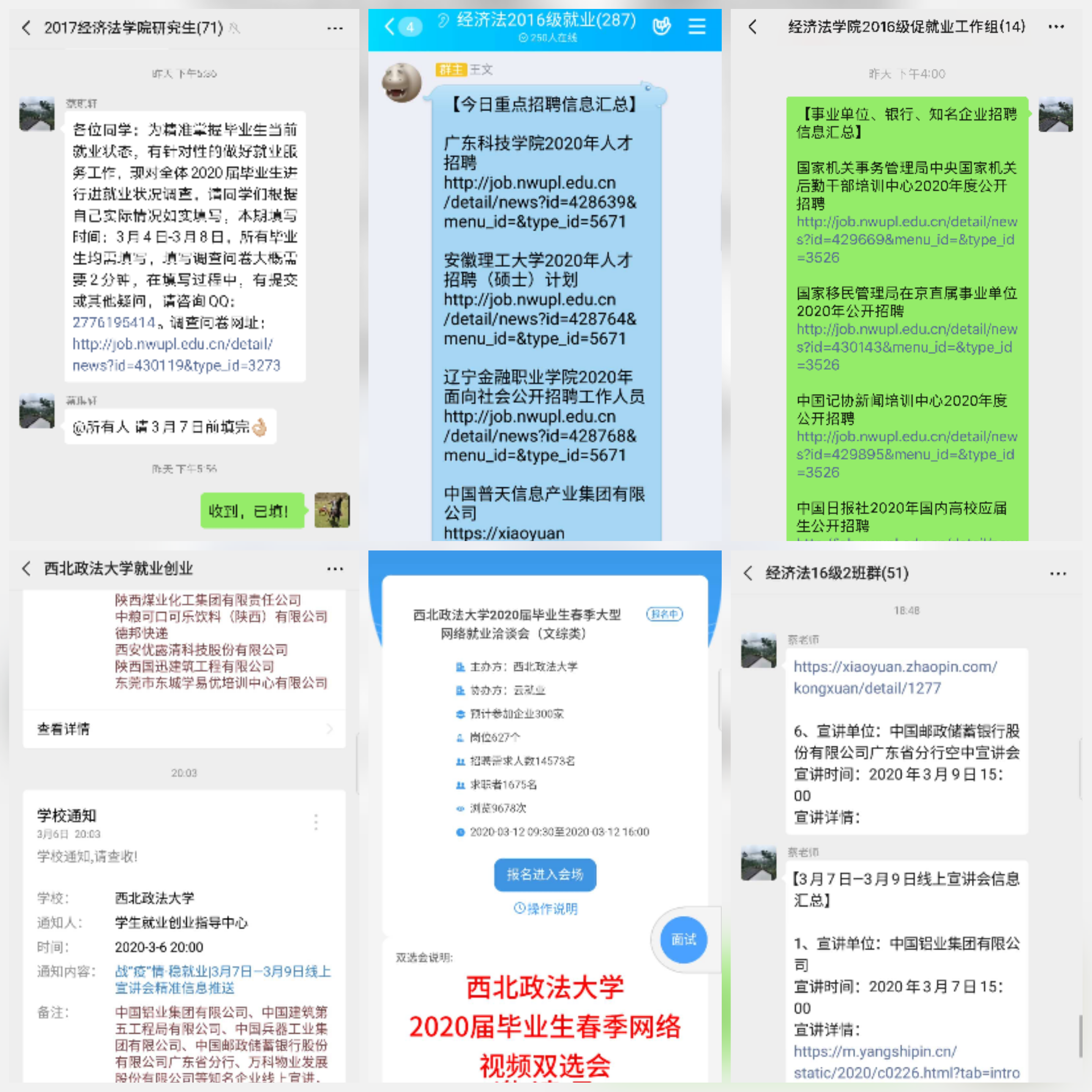 1.多途径收集就业信息。①永利娱乐场官网 安排专人搜集有关企业春招、研究生复试、公务员考试、事业单位及选调生报名安排等各类通知、公告信息;②永利娱乐场官网 研究生导师、本科生导师以及专业骨干老师,充分发挥社会影响力、利用社会资源,通过校友等多渠道收集各类就业信息。