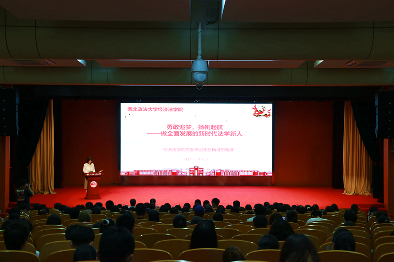 最后,李建梅书记为全体新生讲授了题为《勇敢追梦 扬帆起航——做全面发展的新时代法学新人》的思政课。