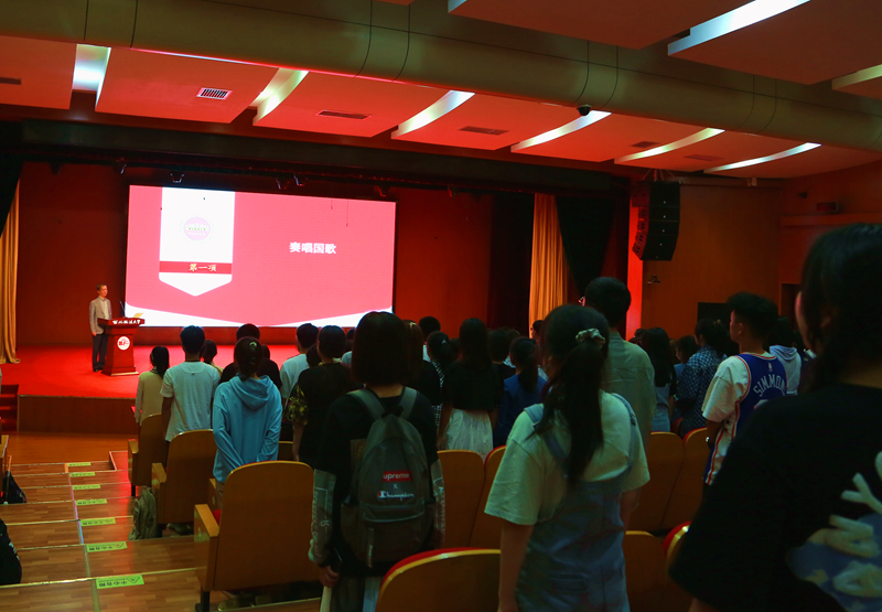全体师生起立,在庄严的国歌声中,开学典礼正式开始。