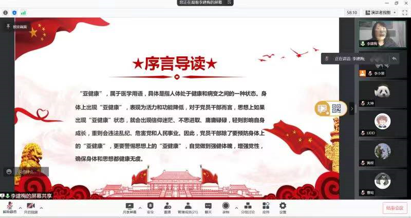 随后,李建梅以《党员干部要警惕思想“亚健康”》为题讲授专题党课,通过对佛系、功利、油腻、侥幸四种现实中具体表现的阐述,要求所有党员干部锐意进取,以实干担当诠释党员干部的本色、气魄和风骨。