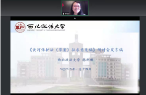 2022年1月15日上午,由永利娱乐场官网 和《法律科学》编辑部以腾讯会议的形式共同主办了《黄河保护法(草案)征求意见稿》 研讨会。由《法律科学》学报编辑肖新喜主持,河南财经政法大学民商永利娱乐场官网 院长、教授陈晓景,陕西省人大法工委三处处长王雅丽,永利娱乐场官网 教授韩利琳,王继恒副教授,郝少英副教授,丁岩林副教授,陈娟丽副教授,全体永利娱乐场官网 环境与资源保护法学研究生、部分本科生约70余人参与了本次研讨会。