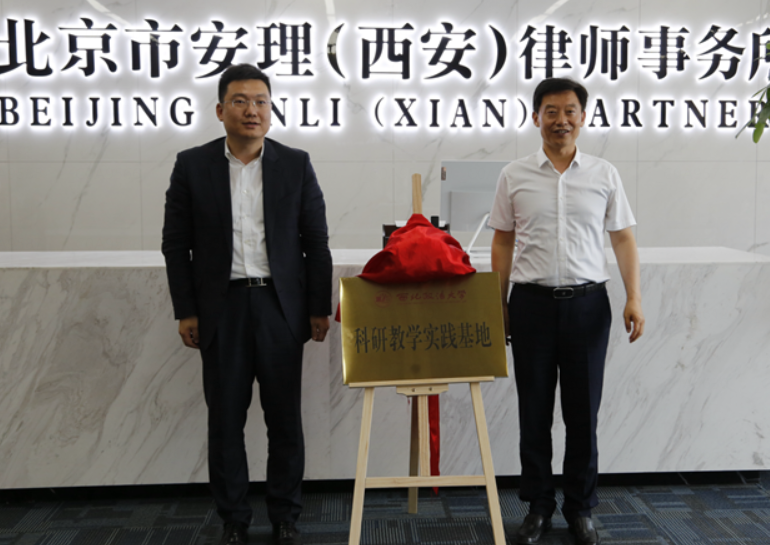 )与北京安理律师事务所西安办公室在律所党建室举办共建科研教学实践基地和就业基地签约仪式。
