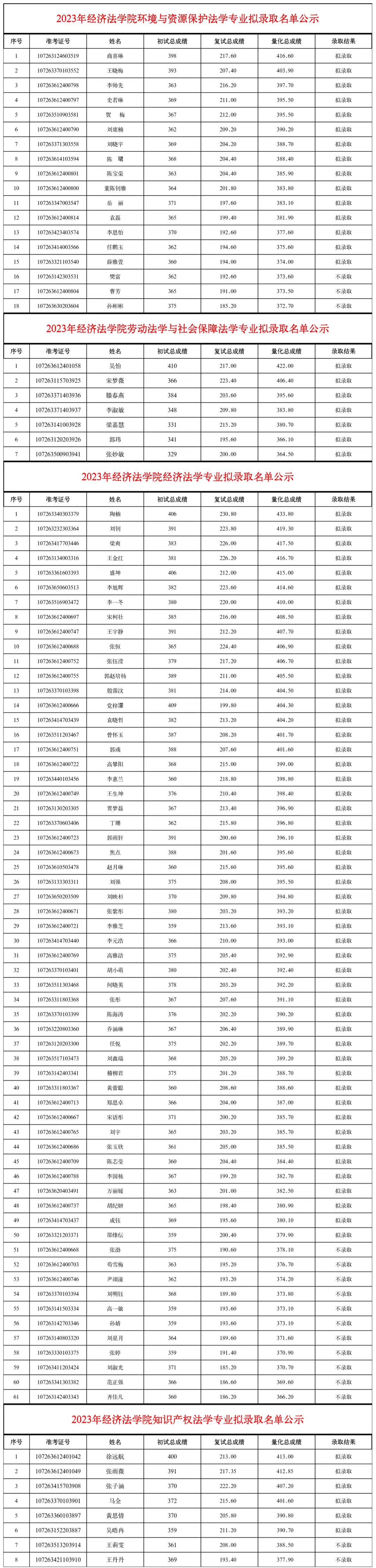 根据《永利娱乐场官网 2023年硕士研究生复试录取方案》,永利娱乐场官网 于2023年4月1日进行了硕士研究生招生复试工作。依据考生量化成绩,经永利娱乐场官网 复试领导小组确认并经研究生院审核,现将永利娱乐场官网 2023年经济法学专业、环境与资源保护法学专业、知识产权法学专业、劳动与社会保障法学专业硕士研究生拟录取名单予以公示(具体名单见附件),公示期自今日起十个工作日。如对拟录取结果有异议,请在结果公布起十日内申请复议。