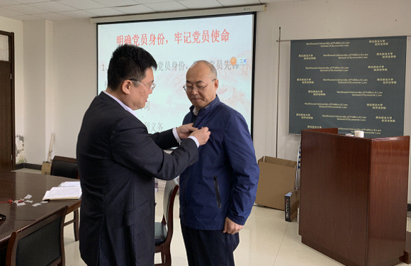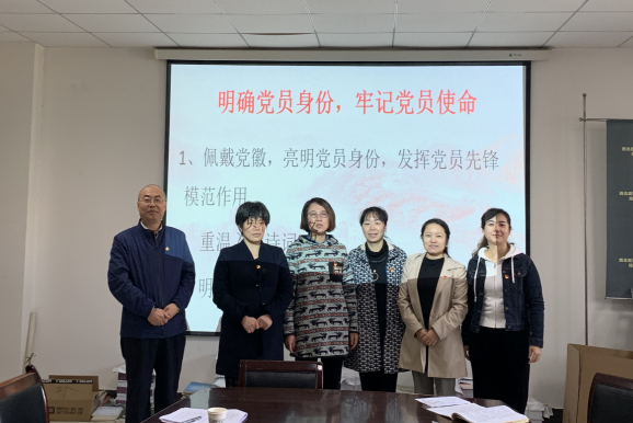 首先,佩戴党徽,亮明党员身份,发挥党员先锋模范作用。倪楠院长给老党员谢德成老师佩戴党徽,谢老师给党支部其他党员佩戴党徽。全体党员“佩戴党徽”,亮明身份,充分发挥一枚党徽就是一面旗帜的先锋作用,增强了党员的身份意识、责任意识、进取意识。