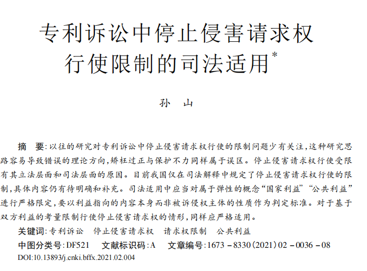 专利诉讼中停止侵害请求权行使限制的司法适用_孙山.pdf